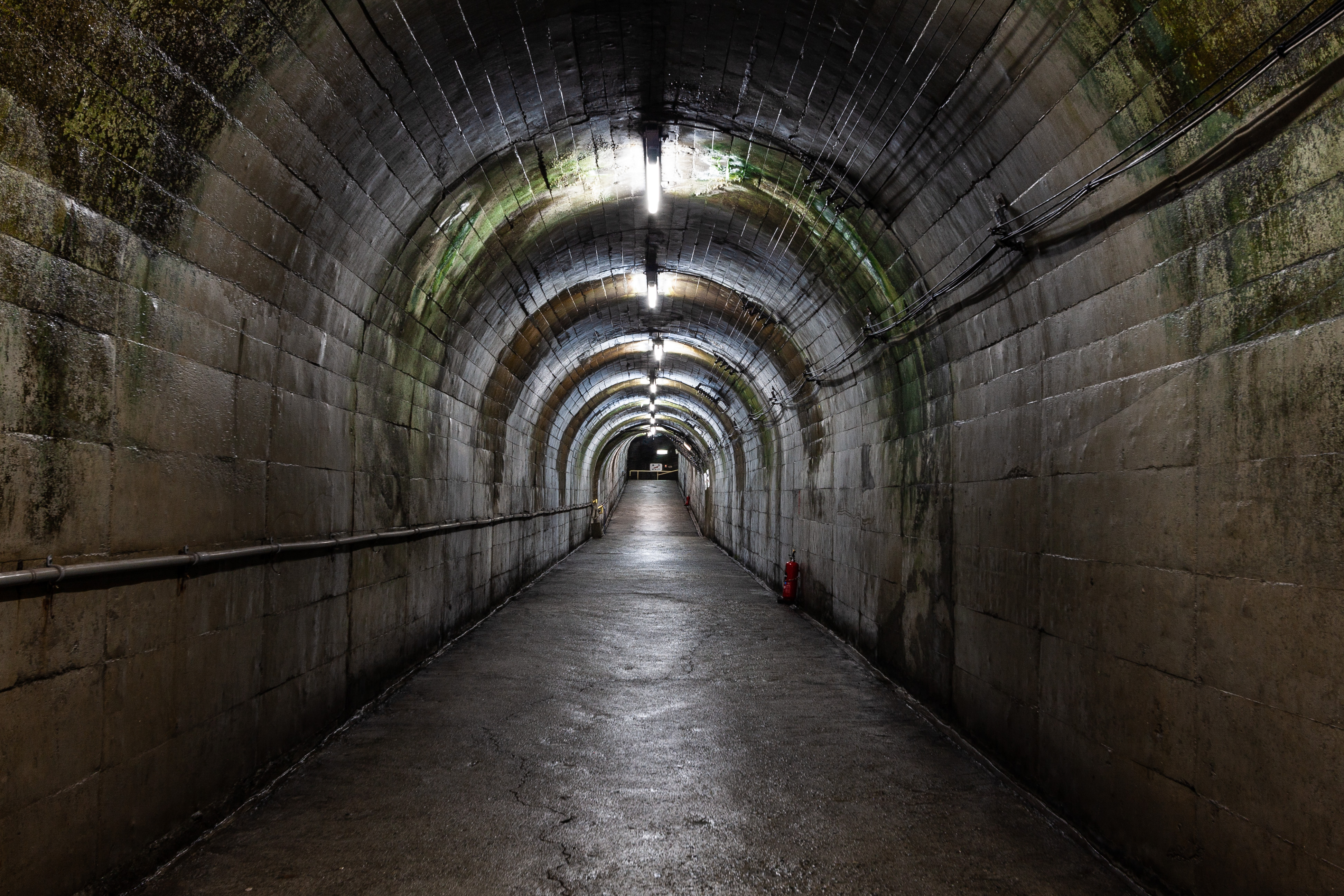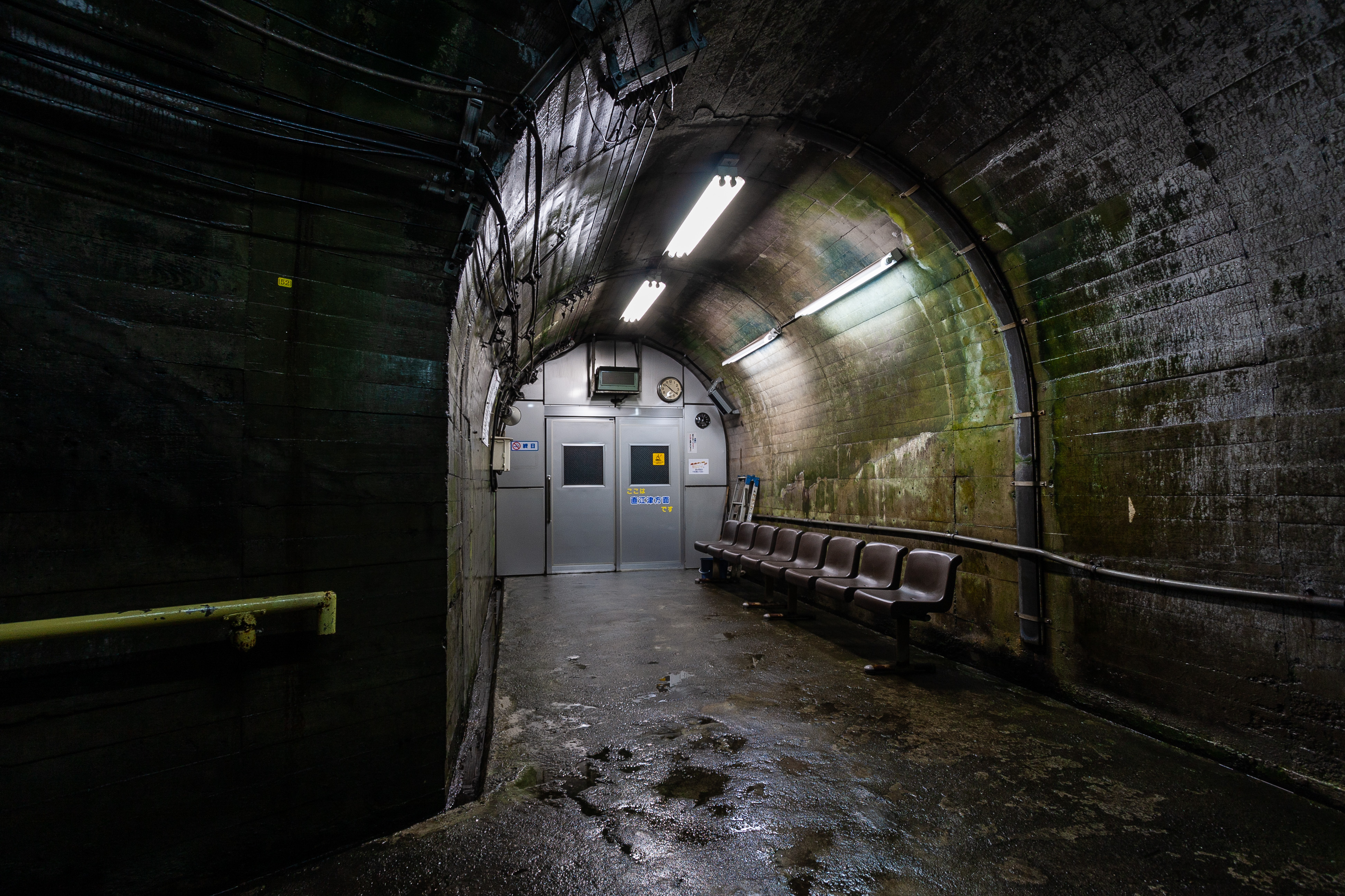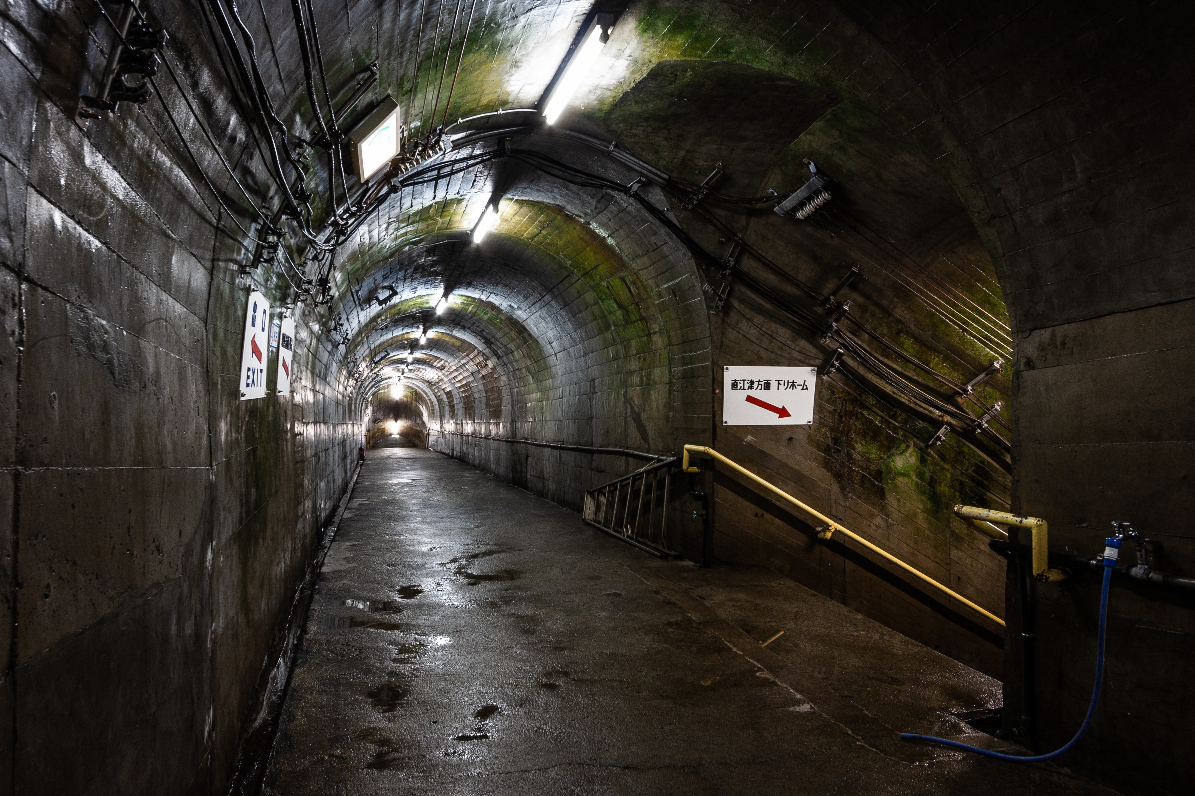 外気温が30度を超えている中、トンネル内の気温との差が大きいためか、上から下まで湿っていました。